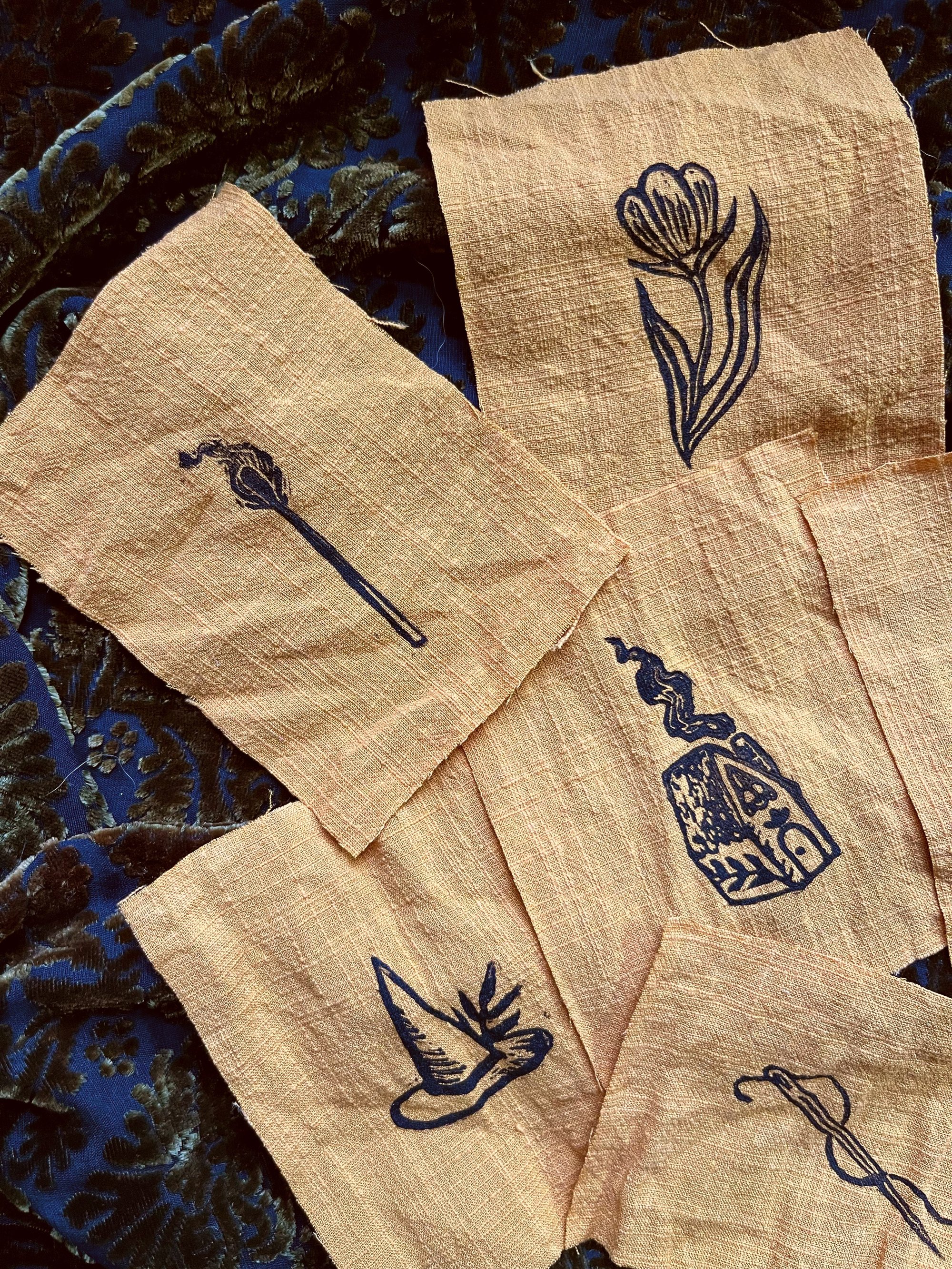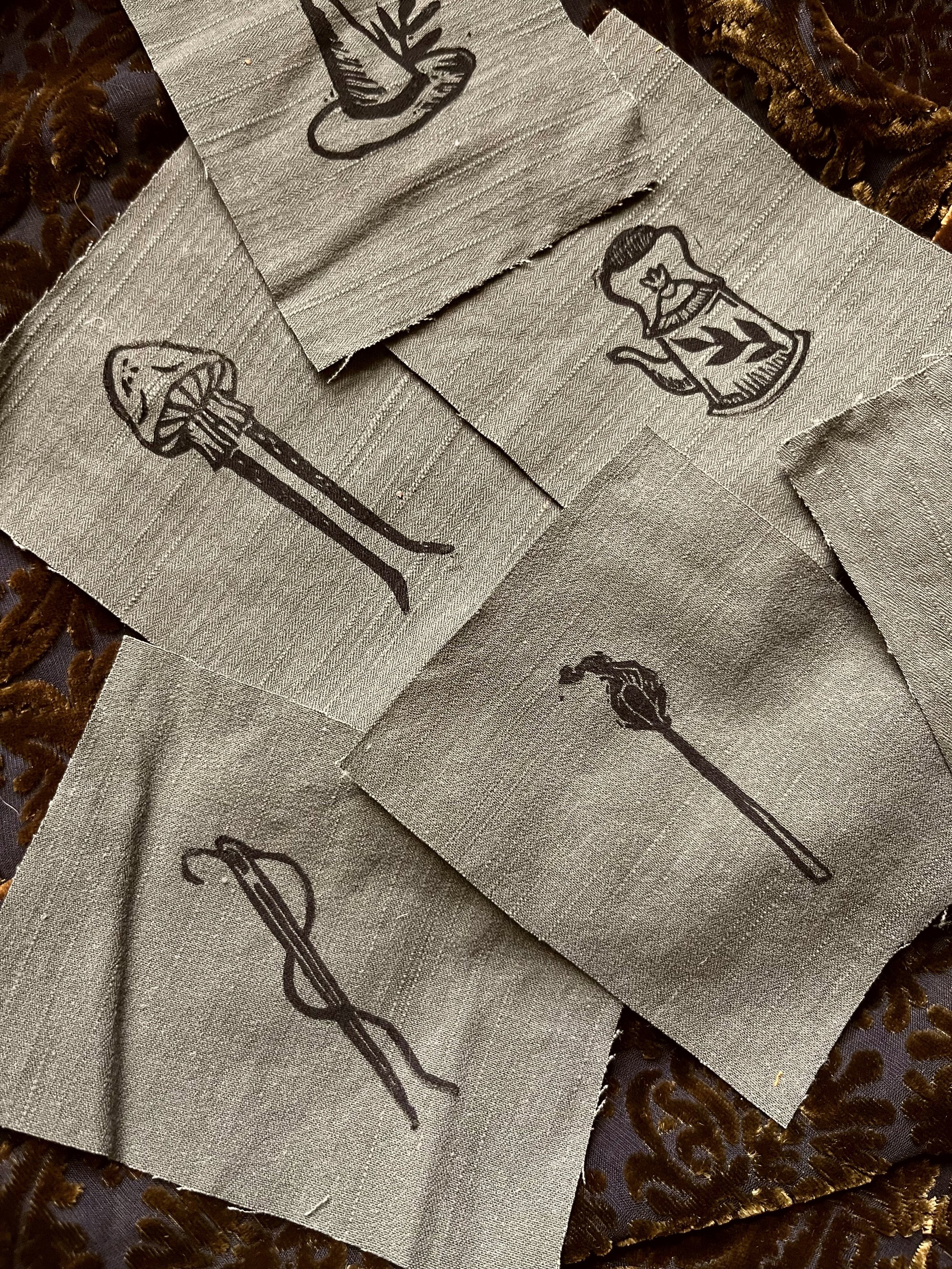 Blowck printed patches designed and hand carved by Feather Evans:)