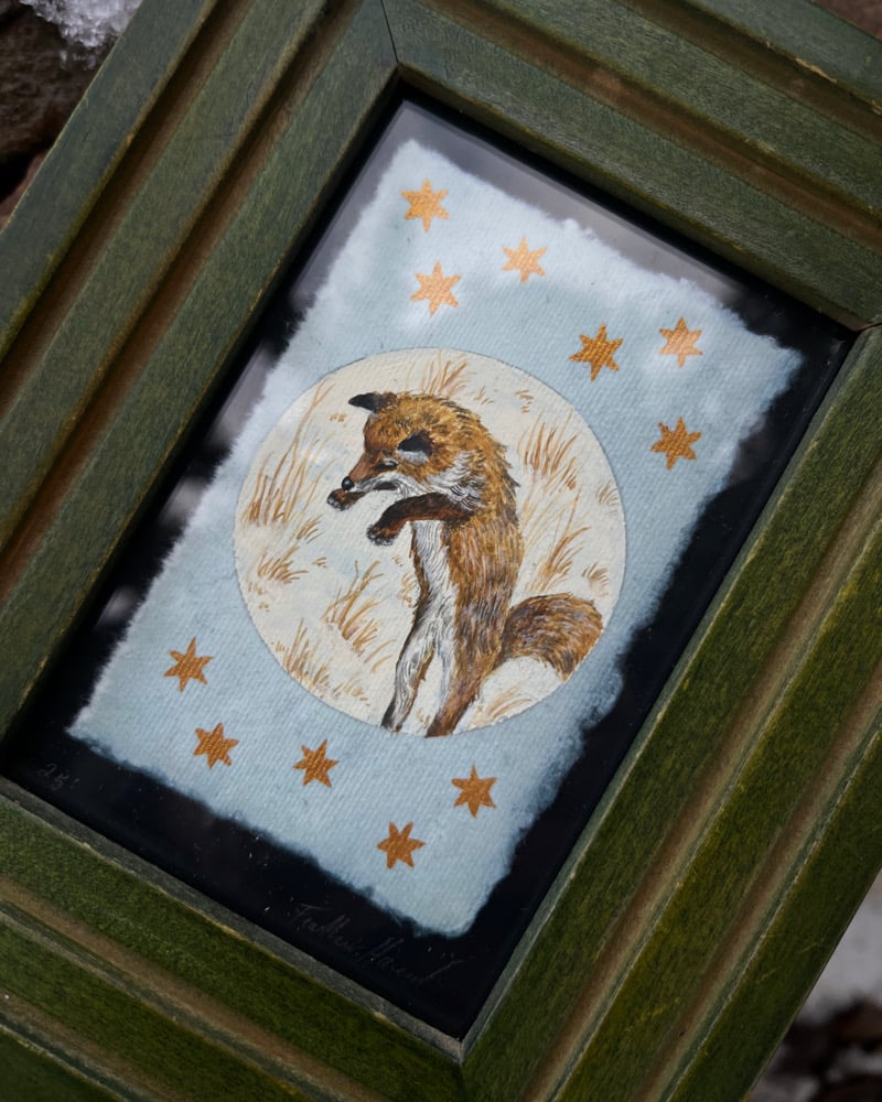 Hand painted fox made with goauche and mineral paint on handmade paper:)