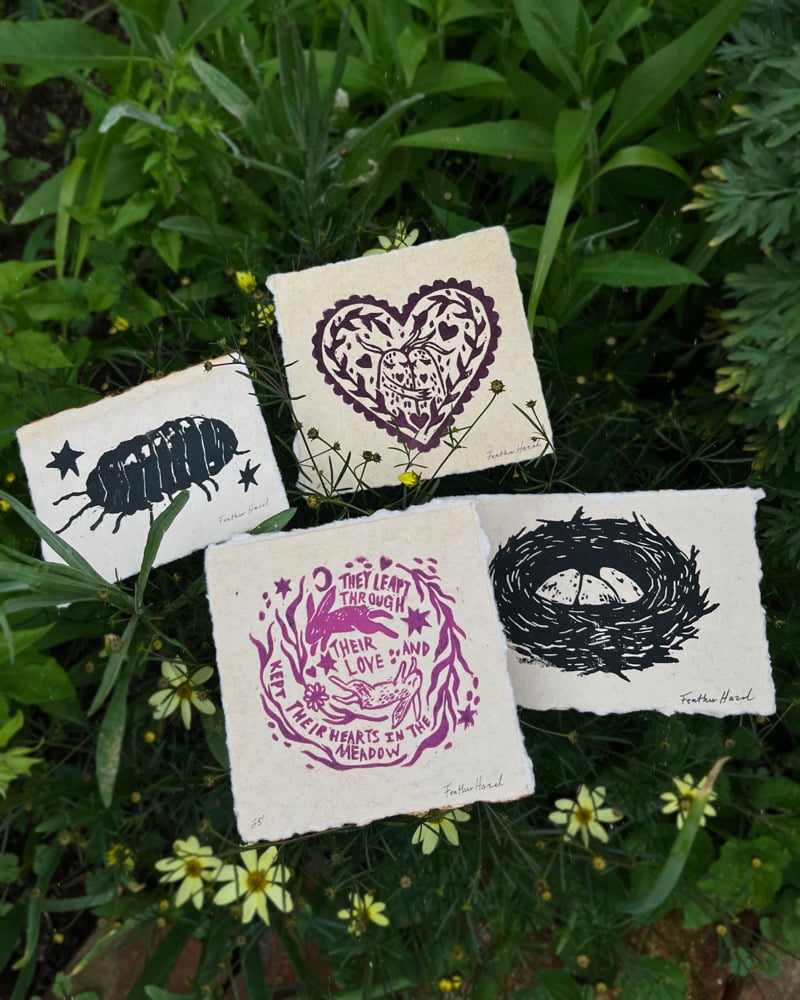Each print is hand carved and printed- each print is unique and will have handmade qualities:)