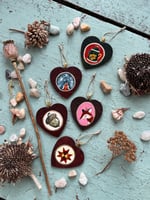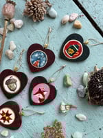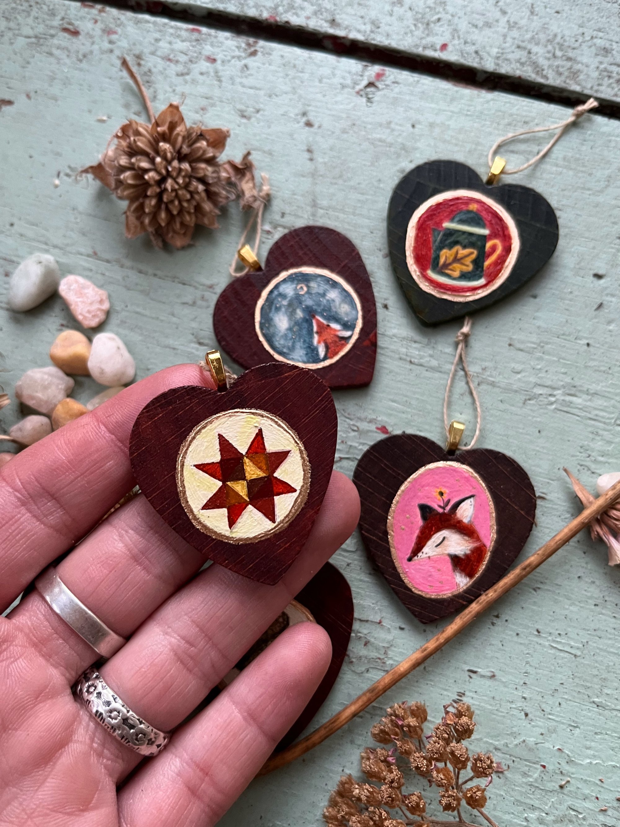 These little hearts are hand painted with gouache, acrylic, alcohol ink, and mineral paint:)